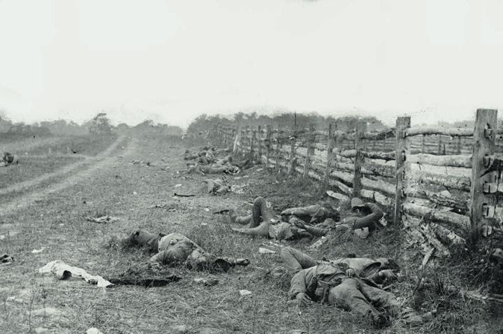 Dowódcy jednostek konfederackiej Armii Pólnocnej Wirginii (od góry): Ambrose Powell Hill, James Longstreet, Thomas Jonathan „Stonewall” Jackson, John Bell Hood